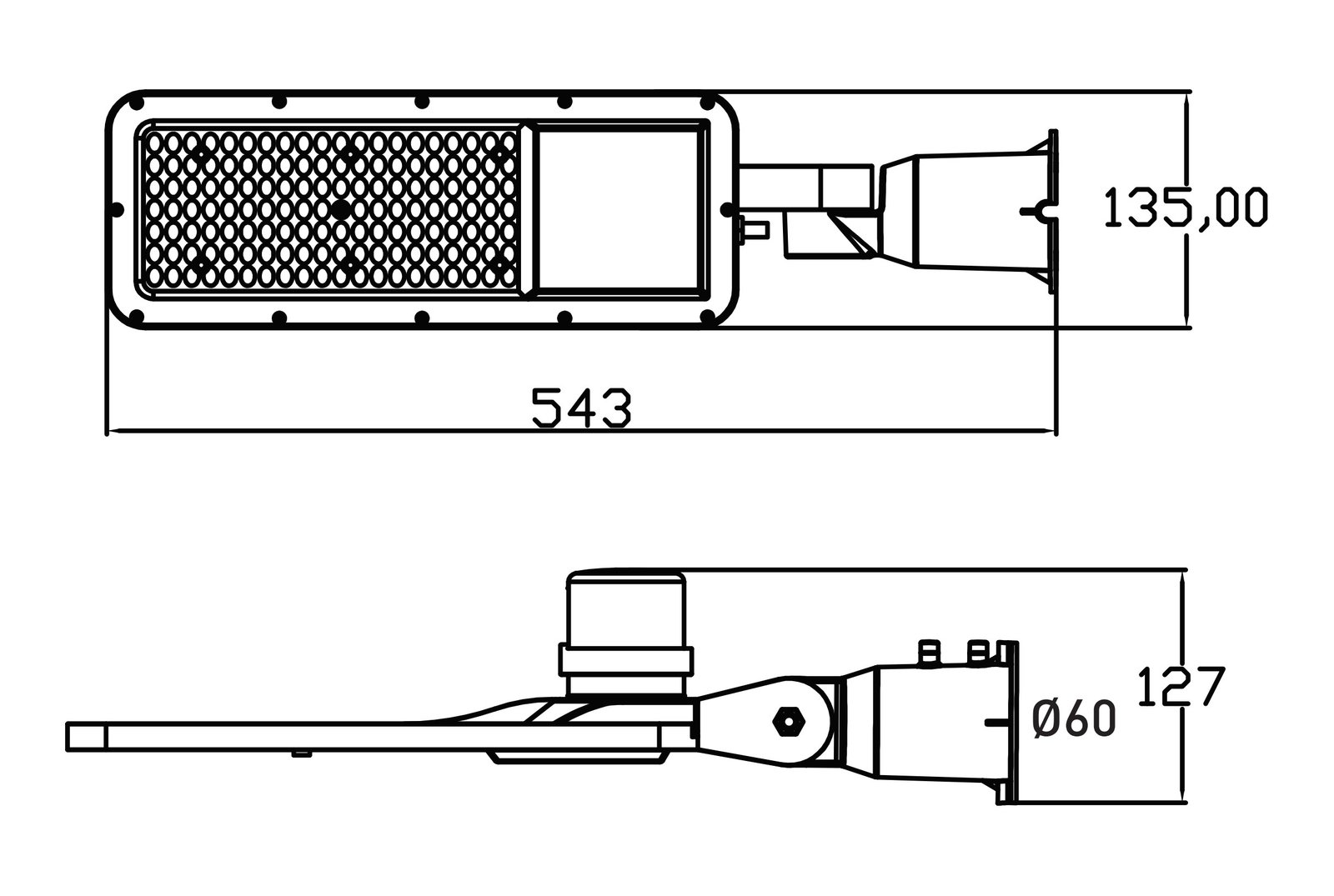 100 watt 5000K Straatverlichting fotocel sensor waterdicht – lichtstroom 10200 lumen – lichtkleur daglicht 5000K – afdichting IP65 – met fotocel sensor dag uit/nacht aan – stralingshoek 100° – product kleur zand grijs – met lens – kantelbaar – afm. 543 x 135 x 127 mm – materiaal aluminium en PC lens – bevestigingsset niet inclusief – levensduur 25.000 uren – met lineer driver – voltage 220-240V