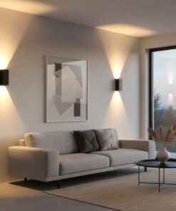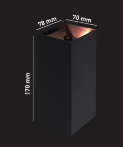 12 watt 2x6W LED sand black wall lamp rectangular duo light adjustable – seal IP65 waterproof – adjustable angle of the light beams – light color 3000K warm white – luminous flux 1160 lumen – COB LED – material aluminum – top and bottom lighting – dimensions. 170mm x 78mm x 70mm – voltage 220-240V – mounting included – suitable for indoors and outdoors.