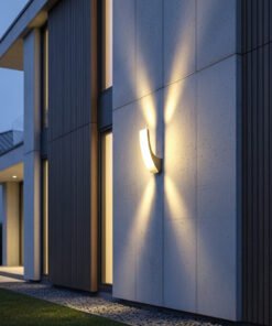 15 watt LED Wall Lamp curved design sand black warm white – light color 3000K warm white – luminous flux 800 lumen – SMD LED – IP54 waterproof – material aluminum and opal PC diffuser – dimensions 262 x 145 x 85mm – voltage 220-240V – mounting included – suitable for inside and outside