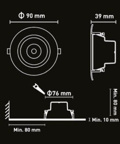 Installation diameter (cut): ø76 mm
