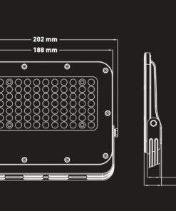 50W 3000K LED Floodlight with Lens, Waterproof – luminous flux 4,800 lumens – light color warm white 3000K – waterproof IP65 – beam angle 90° – product color sand black – dimensions 202 x 145 x 31 mm – material aluminum and PC lens – with lens for precise light beams without waste for maximum brightness – protection against mechanical impacts IK07 – mounting kit not included – lifespan 30,000 hours – voltage 200-240V