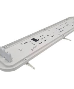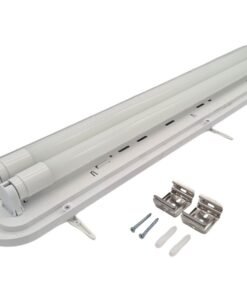 60cm Pro Design double LED TL T8 fixture waterproof white with reflector – IP65 waterproof – product color white – dimensions. 683 x 138 x 84mm – material PC & iron reflector – mounting set included – two T8 Tube input – LED TL Tube not included – voltage 220-240V – one side L N connection – max 18 watts – compatible with 60cm TL tube