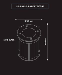GU10 Ground spotlight round sand black – IP65 waterproof – material stainless steel stainless steel and glass – dimensions Ø 105mm x 135mm – voltage 220-240V – GU10 spotlight not included – mounting not included – suitable for indoors and outdoors