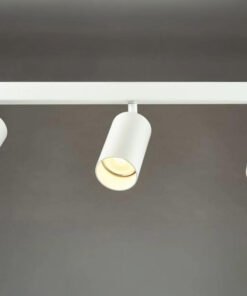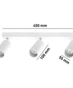 GU10 Opbouwspot Armatuur triple cilinder zand wit draaibaar – afdichting IP20 – product kleur zand wit – afm. Ø 55 x 100mm – afm wandhouder 450 x 50mm – draaibaar 350° en kantelbaar 90° – materiaal aluminium en ijzer – bevestiging inclusief – fitting GU10 – bulb niet inbegrepen – geschikt voor binnen – 3 x bulb invoer – voltage 220-240V – max 35 watt