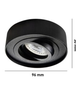 GU10 Recessed design fixture cylinder sand black tiltable with lamp holder – seal IP20 – product color sand black – dimensions. Ø 96 x 30mm – installation diameter ø 75mm – material aluminum – fitting GU10 – including ceramic lamp holder – light source bulb not included – suitable for indoors – one bulb input – voltage 220-240V