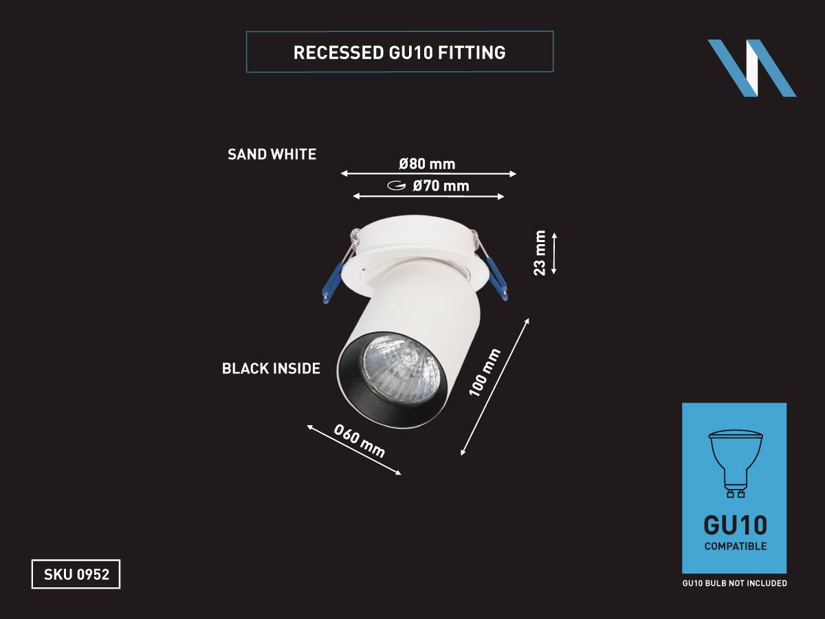 GU10 Recessed spotlight fixture cylinder sand white and black rotatable