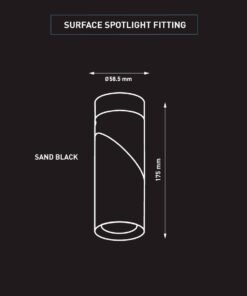 GU10 Surface-mounted spot fixture cylinder sand black rotatable – seal IP20 – product color sand black – dimensions. Ø 58.5 x 150mm – tiltable 180° – material aluminum – mounting included – fitting GU10 – bulb not included – suitable for indoors – one bulb input – voltage 220-240V – max 20 watts