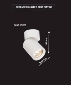 GU10 Surface-mounted spotlight fixture cylinder sand white rotatable – seal IP20 – product color sand white – dimensions. Ø 60 x 100mm – rotatable 350° and tiltable 50° – material aluminum – mounting included – fitting GU10 – bulb not included – suitable for indoors – one bulb input – voltage 220-240V – max 40 watts