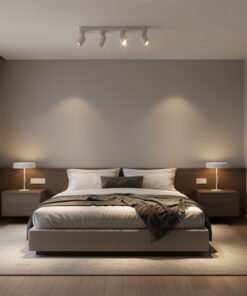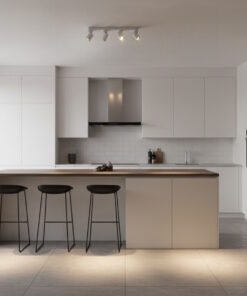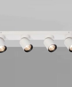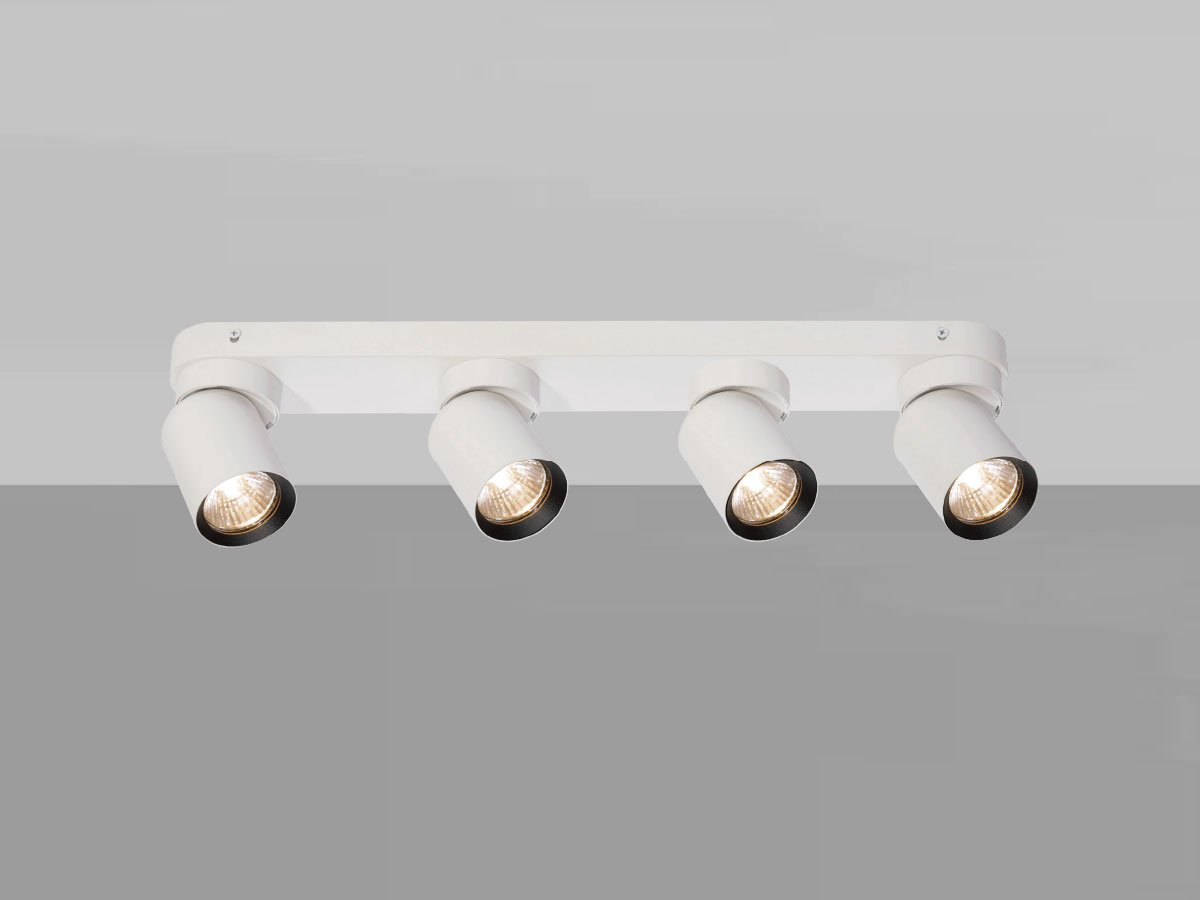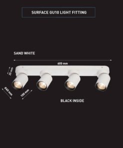 GU10 Surface-mounted spotlight fixture 4 cylinder sand white and black rotatable – seal IP20 – product color sand white and black ring – dimensions. Ø 60 x 100mm – dimensions wall holder 600 x 60 x 25mm – rotatable 350° and tiltable 50° – material aluminum and iron – mounting included – fitting GU10 – bulb not included – suitable for indoors – 4 x bulb input – voltage 220-240V – max 40 watts