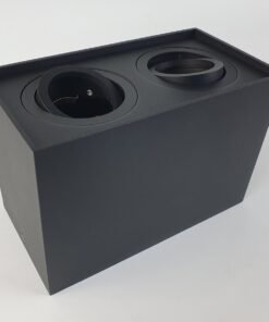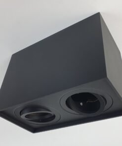 GU10 Surface-mounted spotlight fixture rectangular dual fittings sand black tiltable – seal IP20 – product color sand black – dimensions. 180 x 96 x 125mm – mounting included – material aluminum – fitting GU10 – bulb not included – suitable for indoors – 2 x bulb input – voltage 220-240V