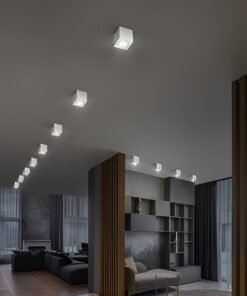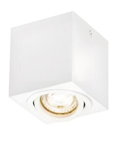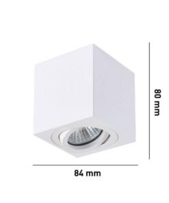 GU10 Surface-mounted spotlight fixture rectangular sand white tiltable – seal IP20 – product color sand white – dimensions. 80 x 80 x 84mm – mounting included – material aluminum – fitting GU10 – bulb not included – suitable for indoors – one bulb input – voltage 220-240V
