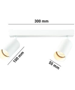 GU10 Surface mounted spotlight Fixture double cylinder sand white rotatable – sealing IP20 – product colour sand white – dimensions Ø 55 x 100mm – dimensions wall bracket 300 x 50mm – rotatable 350° and tiltable 90° – material aluminum and iron – mounting included – fitting GU10 – bulb not included – suitable for indoor use – 2 x bulb input – voltage 220-240V – max 35 watt