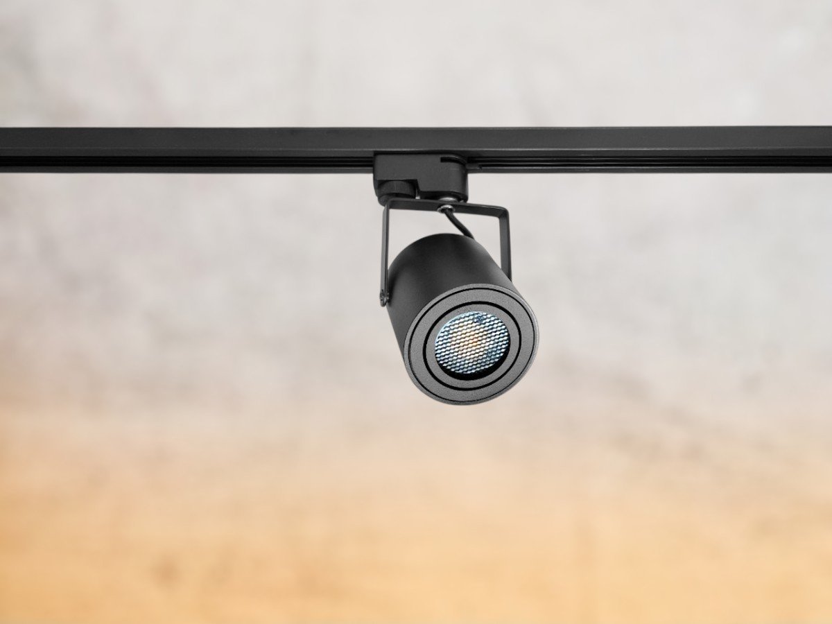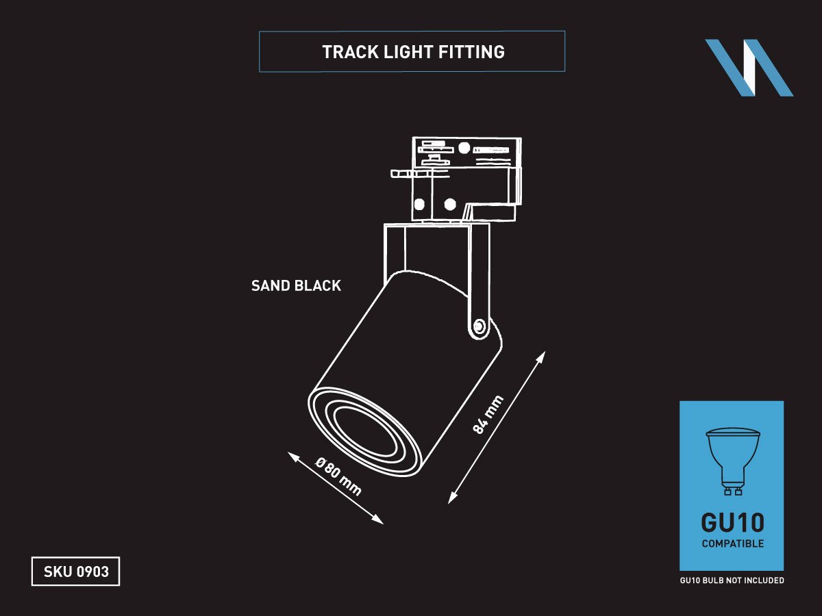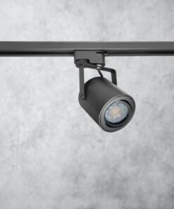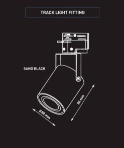 track light spot GU10 fixture cylinder sand black rotatable – suitable for 1 phase 2 wire track light – seal IP20 – product color sand black – dimensions. Ø 80 x 84mm – rotatable 360° and tiltable 210° – material aluminum and PC – mounting included – fitting GU10 – bulb and track not included – suitable for indoors – one bulb input – voltage 220-240V – max 35 watts