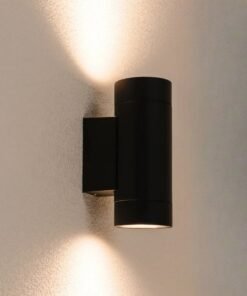Wall lamp Cylinder GU10 duo fitting sand black waterproof – IP54 waterproof – dimensions. Ø 64 x 165 mm – material aluminum and glass diffuser – mounting included – GU10 fitting – bulb not included – suitable for indoors and outdoors – 2 x bulb input – voltage 220-240V – max 2 x 35 watts