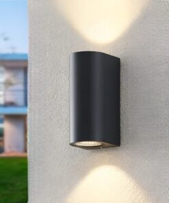 Wall lamp modern semi-circular GU10 duo fitting sand black waterproof – IP44 waterproof – dimensions. 92 x 68 x 150 mm – material aluminum and glass diffuser – mounting included – GU10 fitting – bulb not included – suitable for indoors and outdoors – 2 x bulb input – voltage 220-240V – max 2 x 20 watts